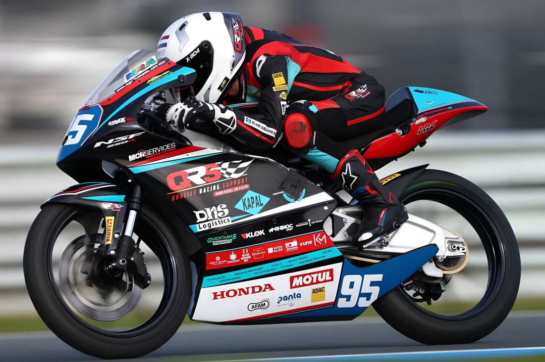 Jaylen Korporaal in actie op zijn Moto3 machine.